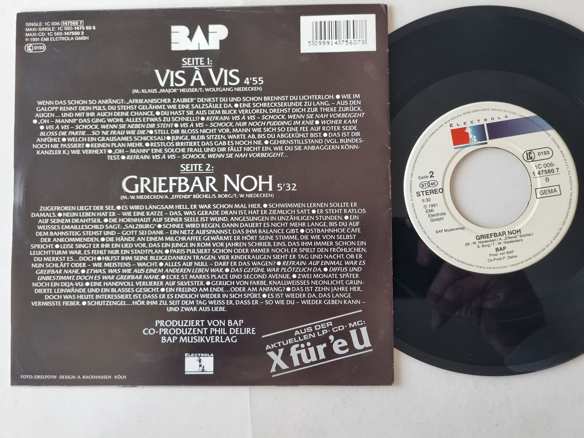BAP - Vis à Vis 7'' Vinyl Germany